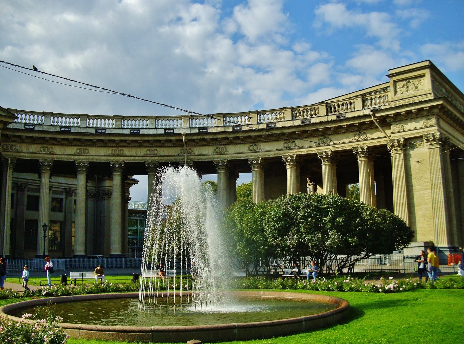La catedral de Nuestra Señora de Kazán es la principal catedral de la ciudad y está consagrada a la virgen de Kazán uno de los íconos más venerado de Rusia. El templo es notable, sobre todo, por una gran columnata de 96 columnas. Una de las curiosidades de esta catedral es que el altar se encuentra en el ala este del templo, mientras que la salida principal y la fachada se sitúan al oeste. Por lo tanto la famosa fachada de columnatas que dan a la avenida no es la fachada principal de la catedral, sino que es en realidad una de las fachadas laterales. Las alas de la columnata forman la plaza enfrente de la catedral. La catedral de Kazán fue percibida por sus contemporáneos como un monumento a las victorias militares de los rusos en la guerra contra Napoleón.