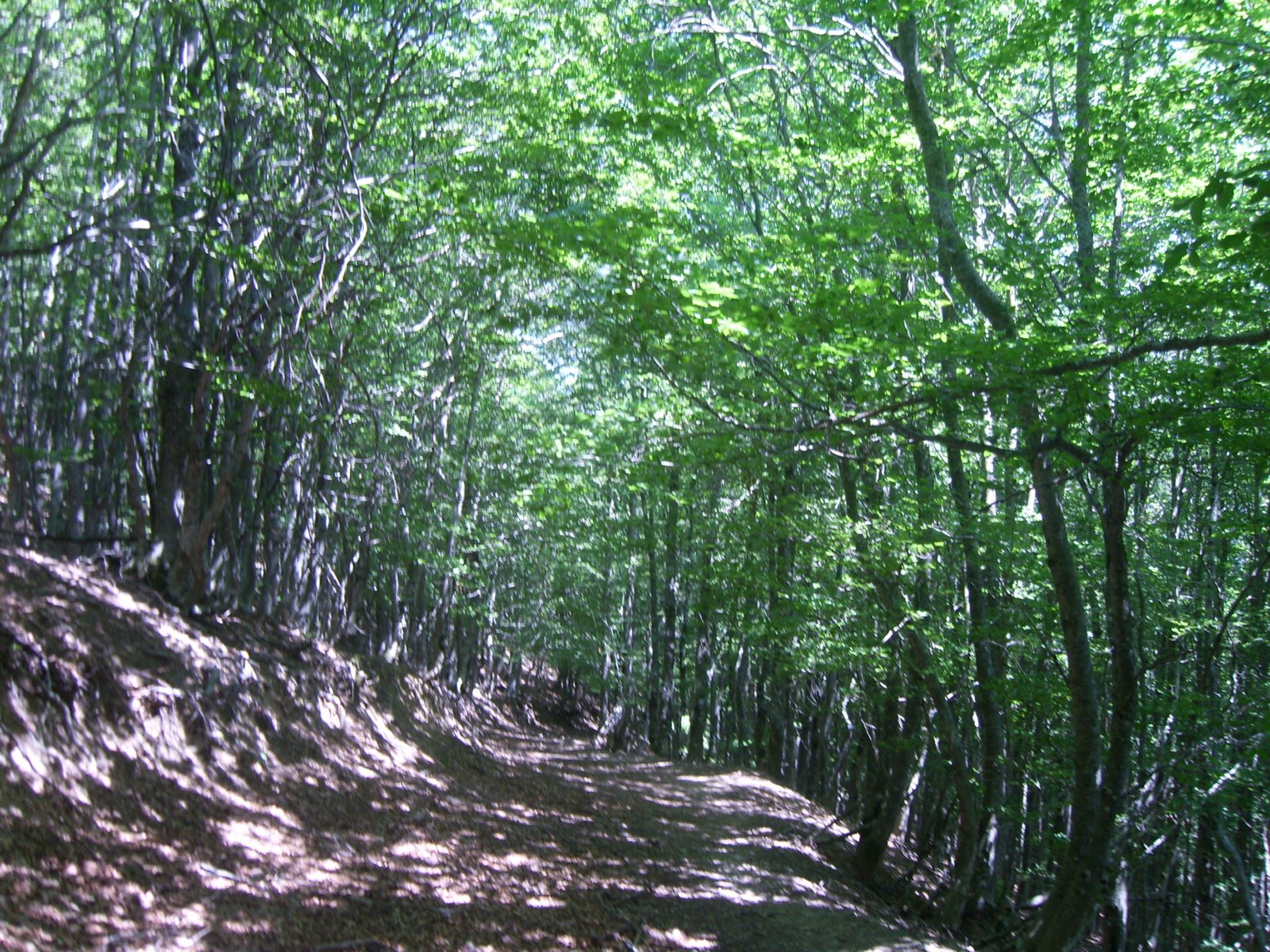 Son 600 metros de desnivel en 3 kilómetros. Por suerte por un lecho de hojas secas y a través de un bosque denso con sombra.