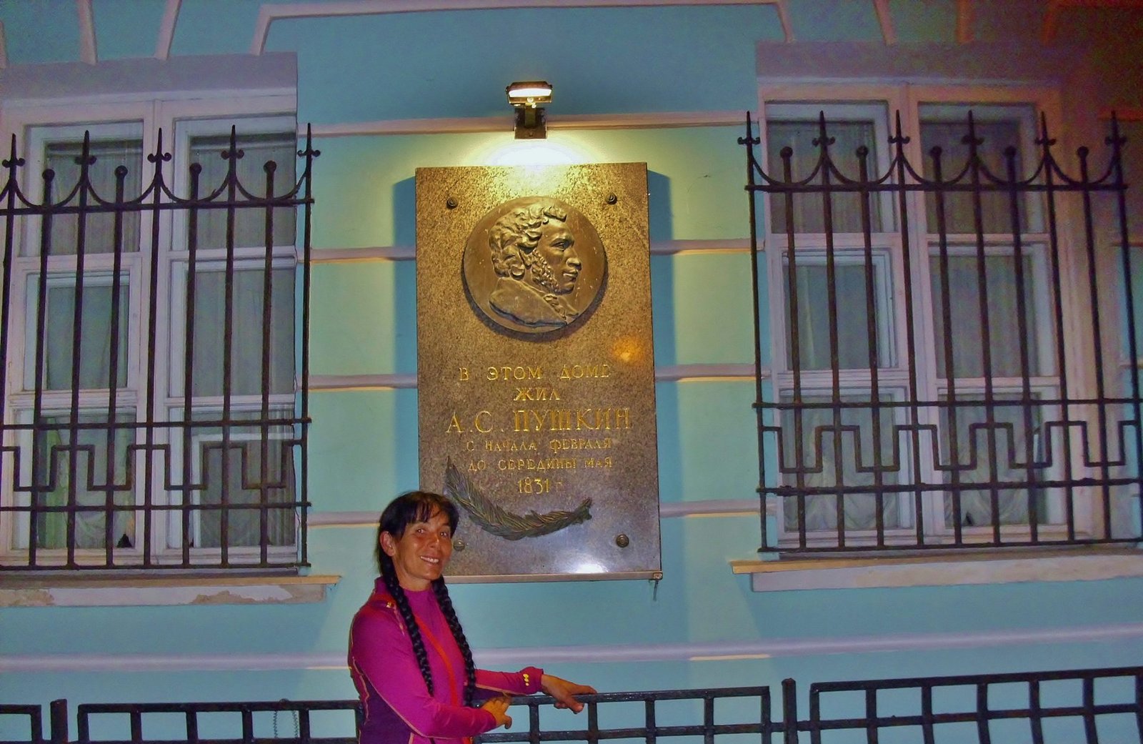 Caminamos por la tradicional calle Arbat, la vieja, y llegamos hasta las puertas de la casa del poeta Alexander Pushkin. Frente a la casa hay una escultura que los representa a él y a su esposa Natalia Goncharova, primera belleza de Moscú.