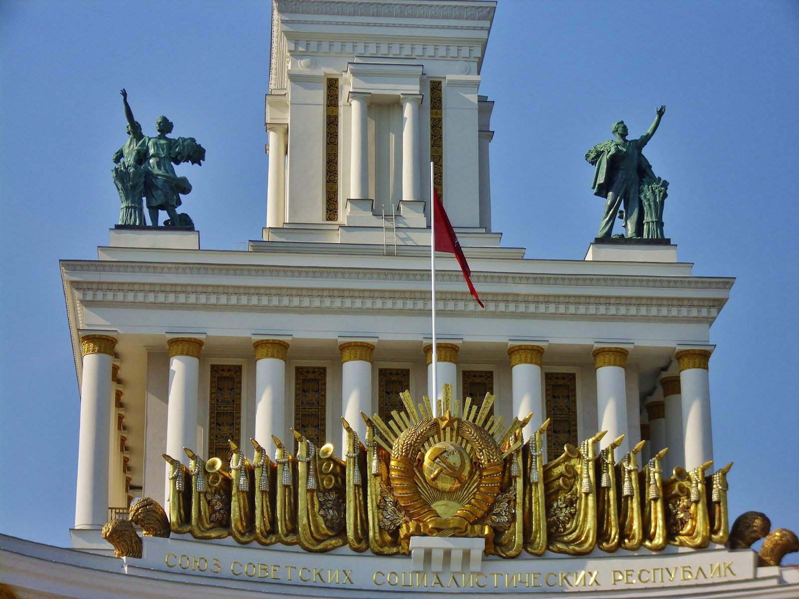 Luego caminamos por los extensísimos jardines del VDNKh. Es el mayor complejo de entretenimiento de Rusia, todos los días atrae a varios miles de moscovitas y visitantes de la ciudad. La exhibición está representada por pabellones y fuentes construidas en la era soviética anterior a la guerra; ubicadas a lo largo de amplias avenidas de asfalto. Hay instalaciones más modernas dedicadas al espacio, la energía y la cibernética. 49 edificios son reconocidos como obras maestras arquitectónicas y monumentos del patrimonio cultural. Las exposiciones son de interés para personas de todas las edades. El complejo es armonioso, con zonas de parques y depósitos de agua, hay un ambiente relajante y aire fresco. Hay más de 250 pabellones para exposiciones. Todos los kolkhozes y sovkhozes de la Unión Soviética aspiraban a participar en ella. Además de los pabellones, se construyeron áreas económicas y de principio territorial, aquí se construyeron atracciones, circo, cines, área recreativa. Cada pabellón representa una de las 15 repúblicas de la URSS o la economía nacional, y en el centro se encuentra el pabellón de la Federación de Rusia y la fuente de la Amistad de los Pueblos con esculturas de oro de sus representantes en trajes nacionales.
