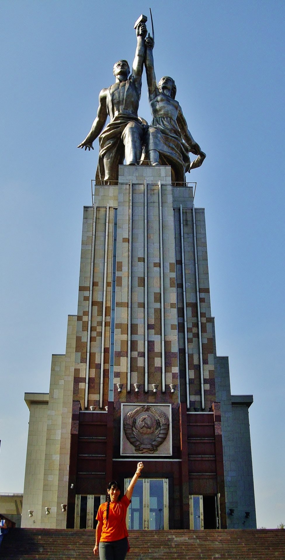 Saliendo del territorio del Museo nos encontraremos, muy cerca de allí, con unos parques inmensos, con fuentes y jardines inconmensurables. Fuimos a pasar buena parte de la tarde, pero antes nos acercamos unos 300 metros hasta la legendaria estatua del Obrero y la Koljotnitsa, la estatua que aparece abriendo todas las películas del cine soviético. El obrero con el martillo y la campesina con la hoz.