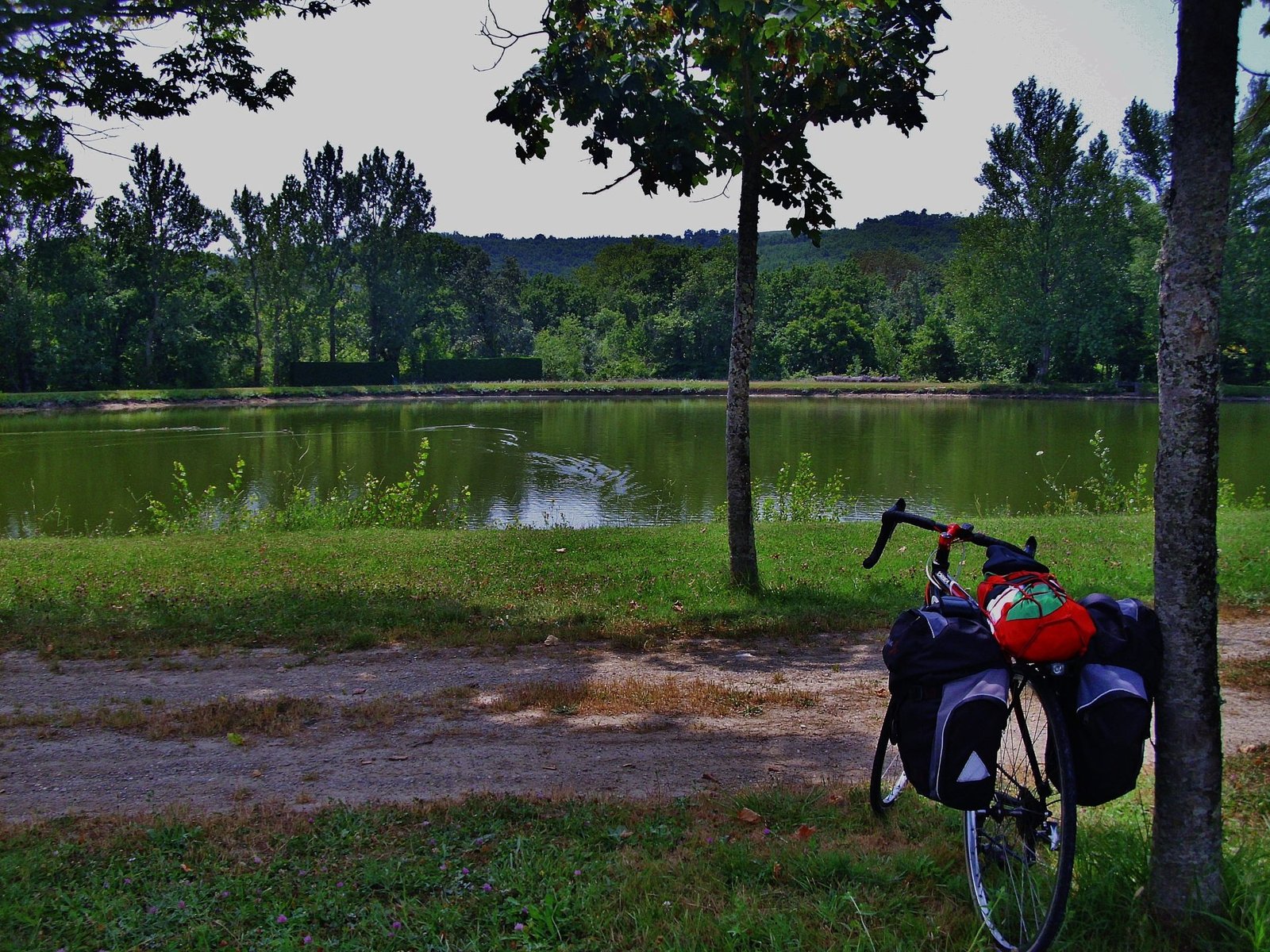 Desde Mirepoix avanzamos buena parte sobre una Via Verde (antiguas vías de tren recuperadas como caminos ciclables). Muchas de estas Vías Verdes son caminos rústicos y aptos sólo para bicis de montaña o todoterreno, no como las nuestras que son ruteras. Son senderos abiertos en la naturaleza, a veces muy angostos, lo que no sería problema, pero con muchos baches y piedras que sí son problema para las llantas más delgadas.