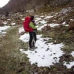 Con dos noches de descanso bajo la constante llovizna, y ya enmohecidos de estar adentro de las carpas, asomando nomás las narices porque afuera estaba helado, retomamos la travesía. Había llovido bastante y había nevado. En todas las etapas y especialmente en este tercer tramo que es para nosotros el cuarto día, hemos encontrado muchos manchones de nieve que cubren grandes áreas que hemos debido cruzar con sumo cuidado. Era el mes de enero.