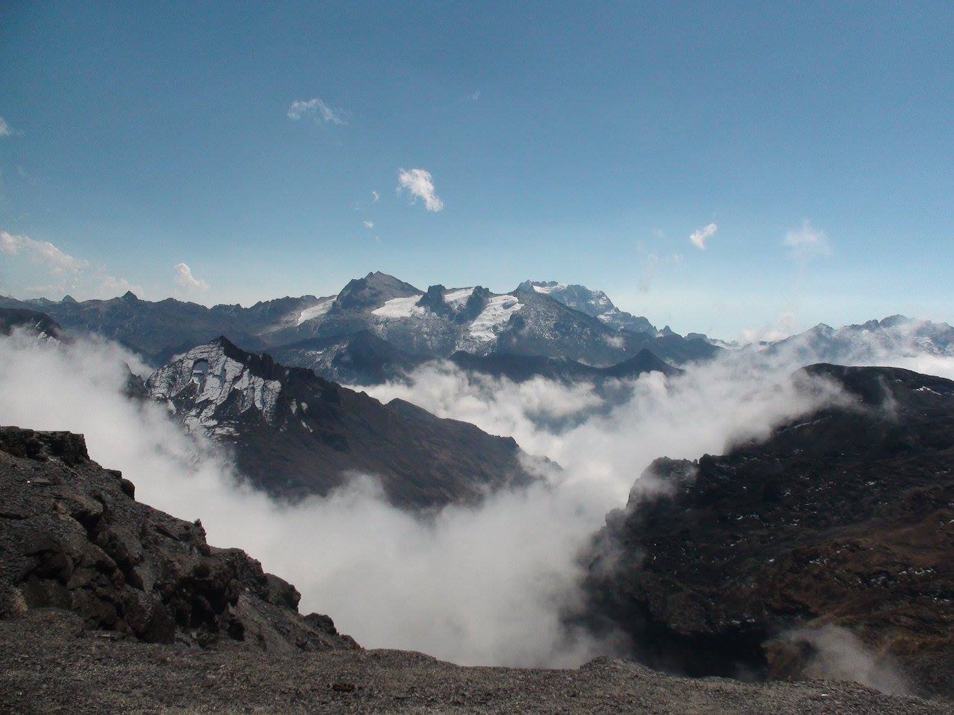 Con dos noches de descanso bajo la constante llovizna, y ya enmohecidos de estar adentro de las carpas, asomando nomás las narices porque afuera estaba helado, retomamos la travesía. Había llovido bastante y había nevado. En todas las etapas y especialmente en este tercer tramo que es para nosotros el cuarto día, hemos encontrado muchos manchones de nieve que cubren grandes áreas que hemos debido cruzar con sumo cuidado. Era el mes de enero.