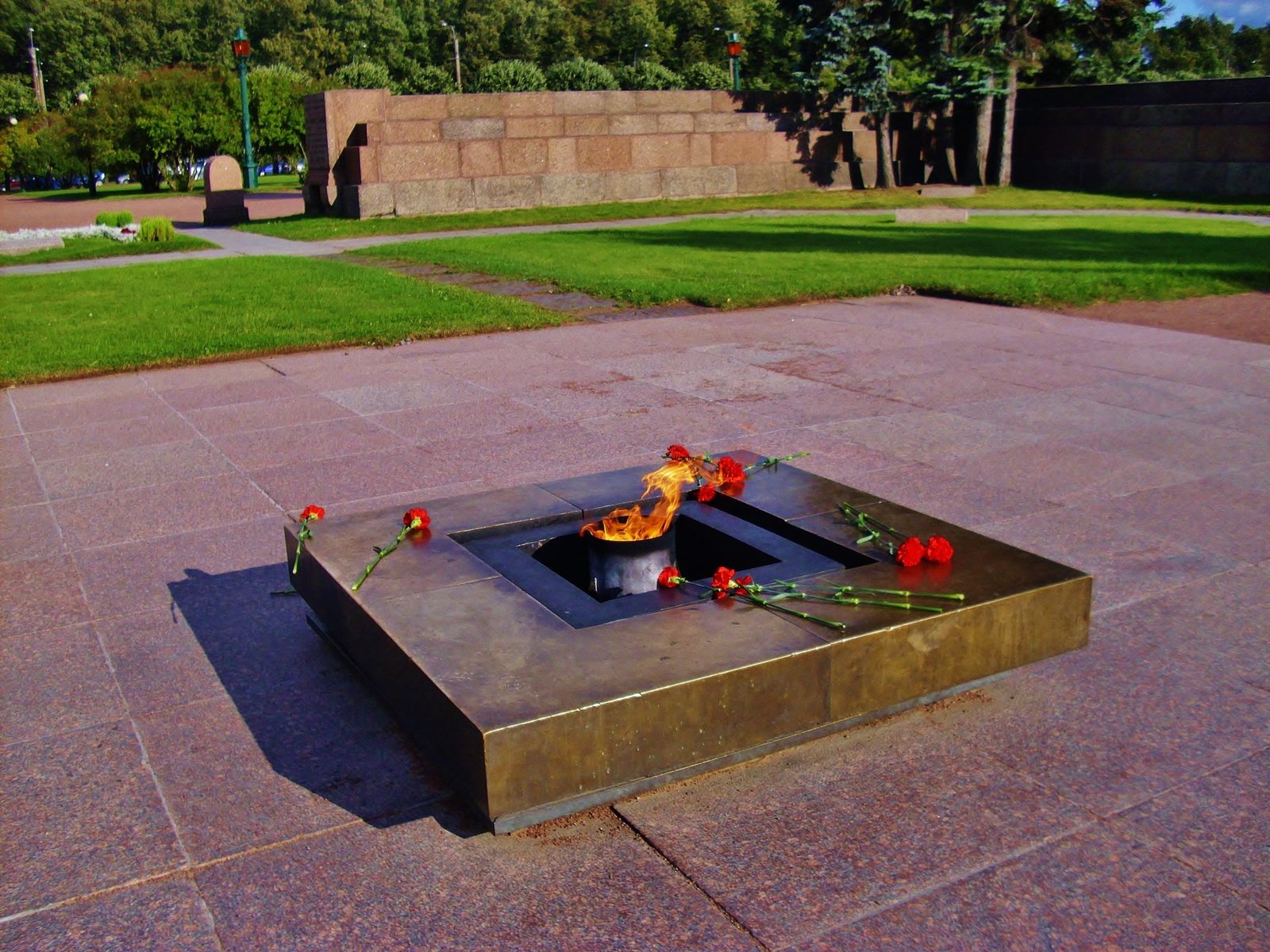 El Campo de Marte, está junto al río Moyka, muy cerca del Jardín de Verano. Ocupa 9 hectáreas. Su historia se remonta a los primeros años de San Petersburgo. En esa época se llamaba «Gran Pradera».  Luego fue también campo de entrenamiento. Durante la Guerra y el sitio de Leningrado fue cubierto de huertos que ayudaban a abastecer a la población sitiada cuando lograban crecer antes de ser incendiados y bombardeados. Muchos revolucionarios, combatientes del Ejército Rojo, bolcheviques, miembros del Partido Comunista están enterrados aquí. También están enterrados los participantes asesinados de la Revolución de febrero de 1917 . En 1957 se encendió una llama eterna en el centro del Campo, la primera de Rusia. Desde aquí la llama se transportó a Moscú en 1967 y se colocó cerca de la muralla del Kremlin en la Tumba del Soldado Desconocido.