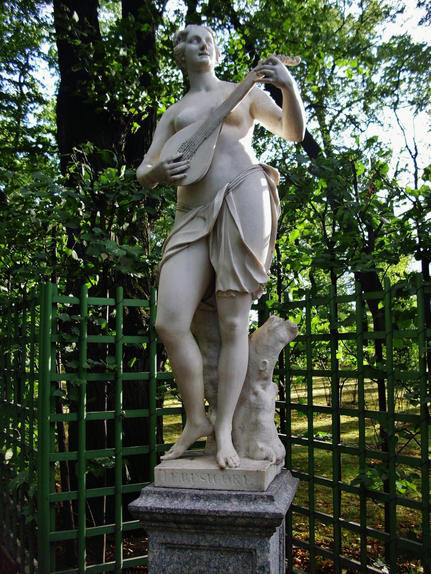 Aparte de las estatuas, una importante atracción del parque son las fuentes, las más antiguas de Rusia, que representan escenas de las fábulas de Esopo. Algunas de estas cayeron en desuso y fueron demolidas después de una inundación que destruyó la maquinaria.