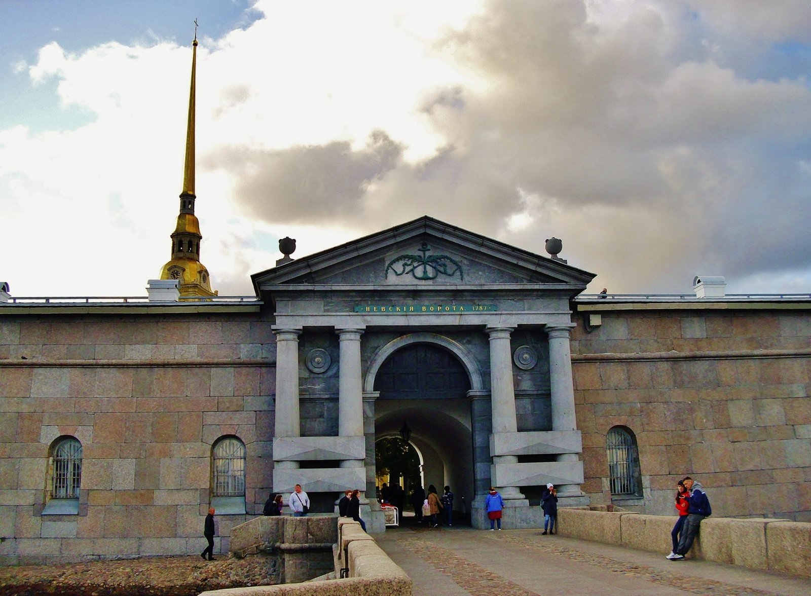 Cruzamos el río y nos fuimos a visitar la Fortaleza de San Pedro y San Pablo que se encuentra en un islote, la Isla Zayachi. Este islote y la fortaleza corresponden a la ciudadela original de San petersburgo. Contiene diferentes edificios remarcables, la Catedral de San Pedro y San Pablo donde están enterrados los zares desde Pedro I hasta Nicolás II y sus familias.