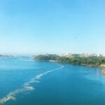Llegamos con tiempo para salir a pasear con las luces del día. Caminamos con nuestro infaltable mate por el Paseo Fluvial que comienza en la fortaleza Ponta da Bandeira e ingresamos al Casco Viejo a través de las murallas de la Praça Infante Dom Henrique.