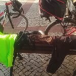 Hemos hecho esta ruta entre enero y febrero con Iñaki Gurmindo que se reveló como un compañero de viaje perfecto. Era su primera experiencia de travesía en bici con carga y, no sólo mantuvo un ritmo envidiable y sorprendente en nuestras jornadas de entre 60 a 80 km, sino que, además, concordó espontáneamente con el ajetreo atípico que suelo llevar yo, hacer muchos kilómetros sin parar y sin comer, optando por carreteras cómodas aunque esto exija, de vez en cuando, circular con tráfico. Como si fuera poco, asumió el stress del GPS ante mi desorientación habitual, y elaboró menús gourmet malcriándome el paladar poco acostumbrado a las delicias de la vida cotidiana. Además de pedalear, recorrer Portugal en bicicleta y, en fin, vivir la vida de viaje, hemos comido y bebido como dioses, saboreando además conversaciones filosóficas y existenciales insospechadas para alguien tan joven y contemporáneo.
