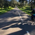 El primer sector que hicimos ni bien arrancar de Lisboa, lo constituye el Alentejo y la Costa Vicentina, sobre cuya ribera atlántica predominan extensiones amplísimas de simpáticos alcornoques. Parecen baobabs y son unos árboles muy bonitos. Algunos tramos de la ruta se hacen largos y solitarios, abunda la paz. Las carreteras que tomamos y que describiré en cada etapa fueron rutas tranquilas, con relativamente poco tráfico. Podíamos ir conversando, cantando, escuchando música y, en general por asfalto muy cómodo. Algunos tramos sobre los acantilados sobre firme de arena, pero en general, ciclable.