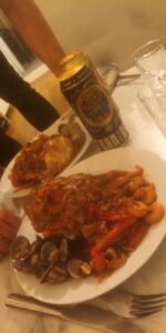El departamento en Setúbal no pudo ser mejor. Estaba cerca del muelle donde al día siguiente debemos tomar otro ferry. Teníamos un patio amplio donde colgamos todo. Lavadora. Y una cocina donde degusté la cazuela de mariscos más deliciosa del mundo.