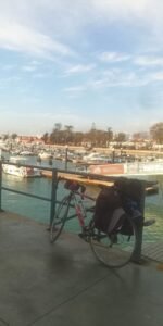 Para comenzar hay que tomar un ferry. Las opciones son dos según vayamos a pedalear por asfalto o rutas más precarias de tierra y gravilla. Para la primera opción, la nuestra, iremos hasta Cais do Sodre y tomaremos el ferry a Seixal. Nos costó en total para los dos con las dos bicicletas, 6.60 euros.