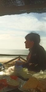 Seguimos por la carretera hasta Matalascañas, un lugar soñado. Allí bajamos a hacer un picnic en un lugar ideal sobre el mar. El camino nos ofreció justo lo que deseábamos, una especie de kiosko o pérgola con una mesa y bancas de cara al mar con todo su horizonte disponible a nuestras miradas. Mejor no pudo ser.