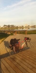 Más adelante pasamos por La Antilla, un barrio de barcas y pescadores ahora con algunas construcciones para el turismo y buscamos salir nuevamente por asfalto hacia Lepe ya que, por la costa hay muchos tramos arenosos difíciles de ciclar. Intentamos, pero tuvimos varias patinadas y caídas así que regresamos al cemento.