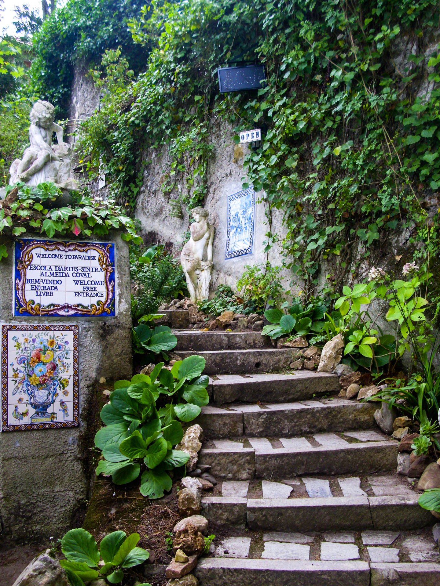 Nosotros pasamos por todos los castillos y palacios pero sin pagar, o sea sin entrar, pero como Sintra es una sierra, es muy fácil, además de hermoso, caminar de un edificio a otro por un bosque exuberante lleno de matas de flores exóticas. Desde cada ladera o colina se pueden apreciar los frentes, muros, y torres de palacios y castillos.