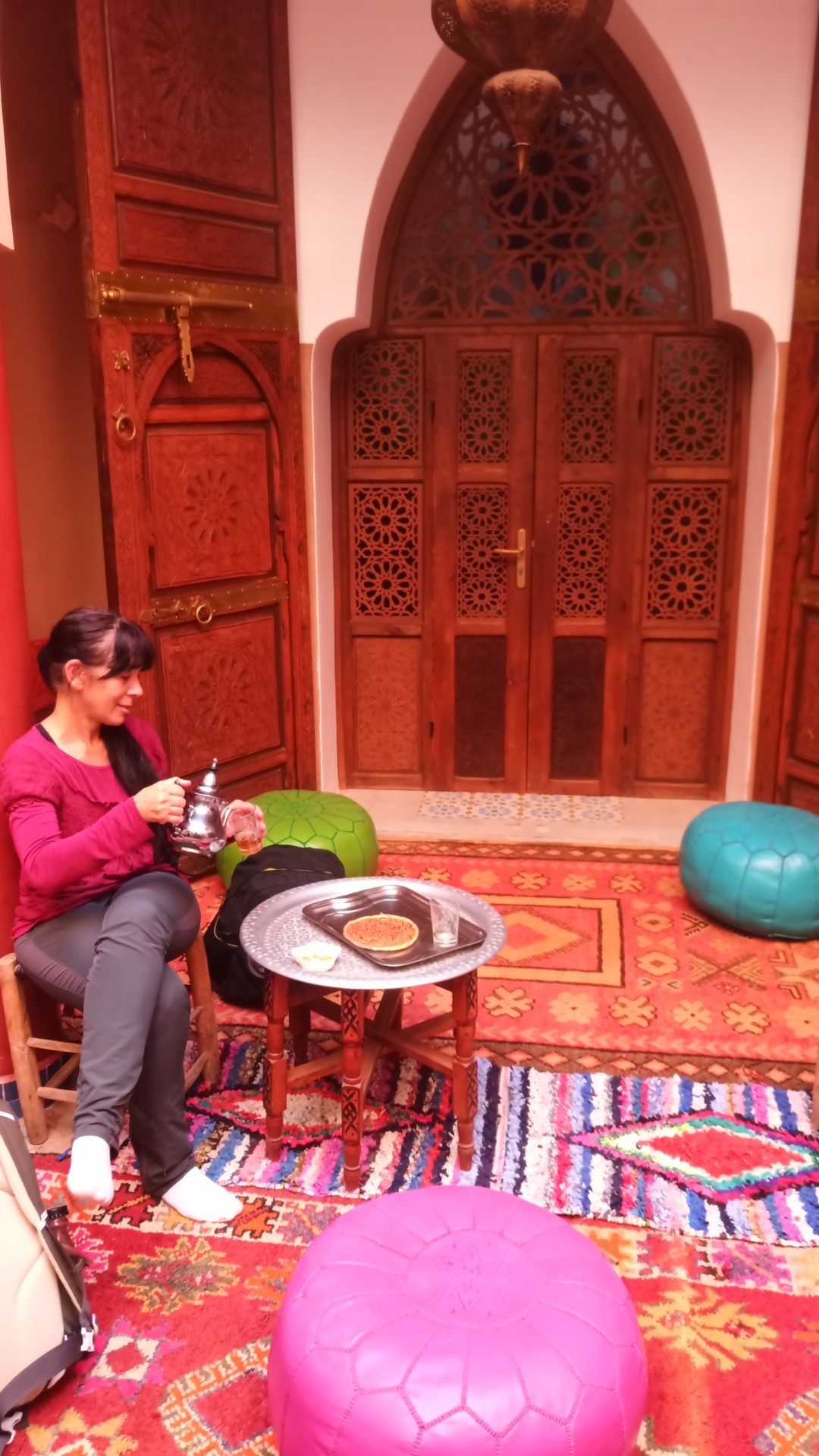 Llegamos a nuestro Riad que resultó por sí solo una estancia en un museo de arte, un palacio delicado y típico. Nos quedamos un rato contemplando cada detalle mientras nos bebíamos la tetera entera y planificábamos una salida al desierto de Zagora por dos días y una noche. Luego salimos a caminar por la ciudad.