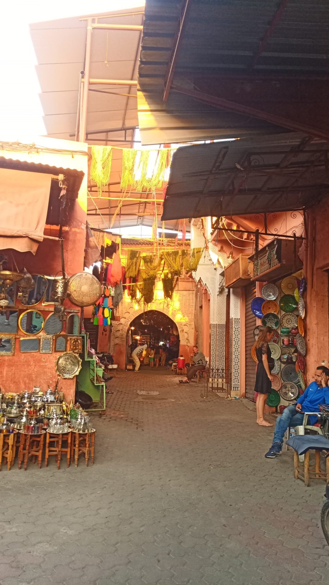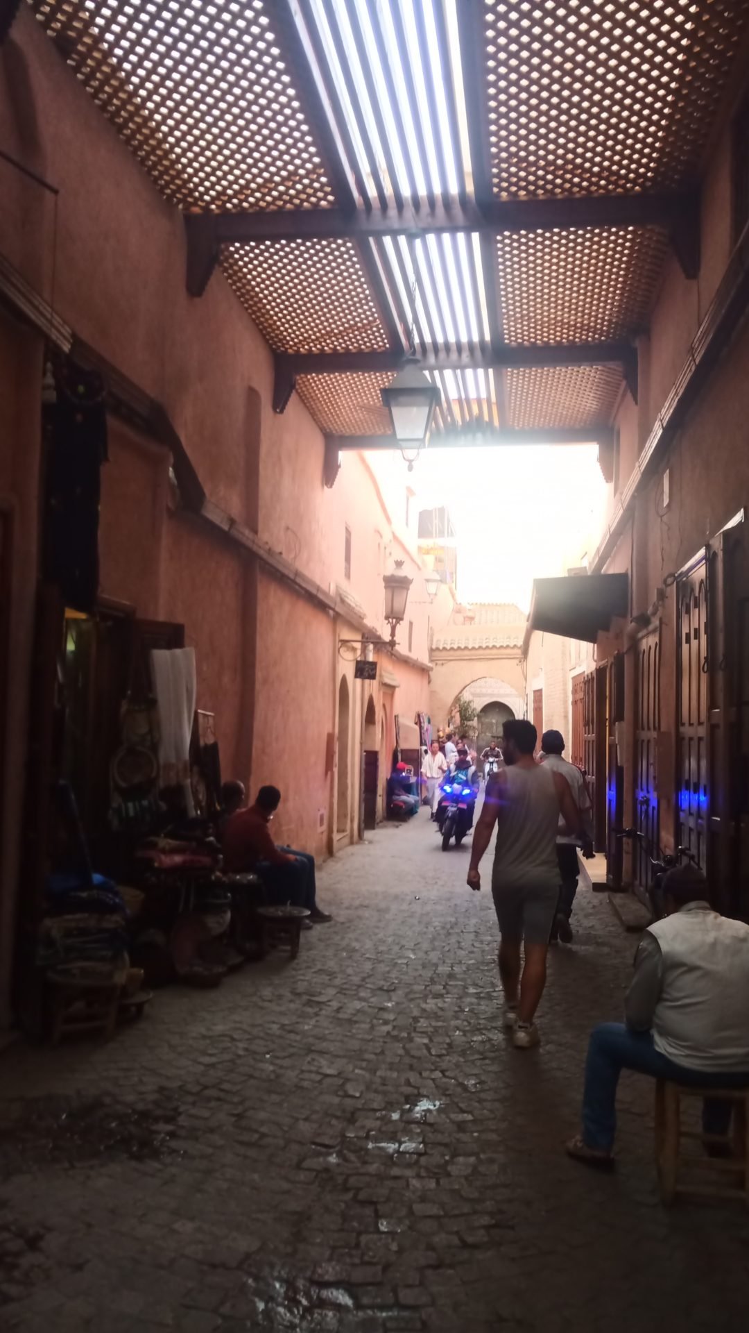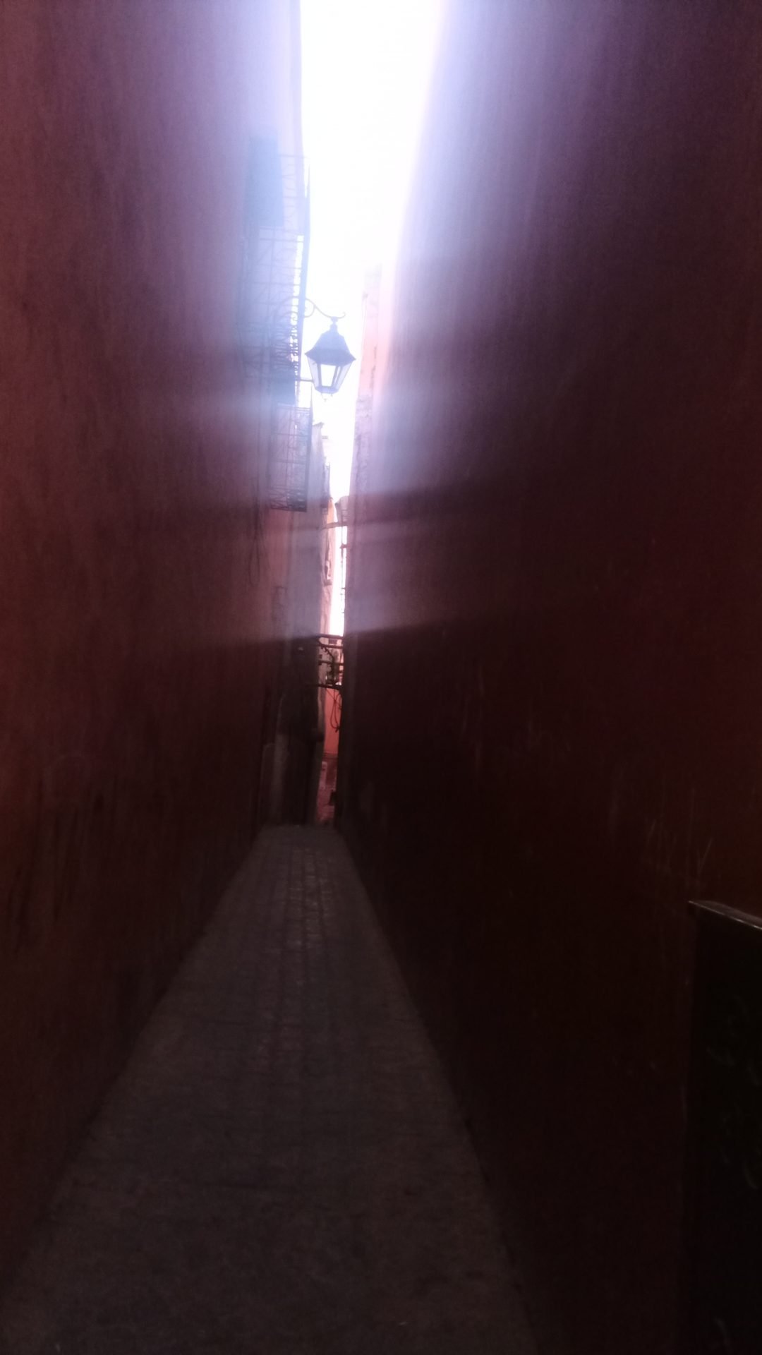 Tras lograr llegar al otro lado de la Plaza, los sombríos paredones de la «Ciudad Roja» nos guiaban por las enrevesadas callejuelas de la Medina donde el barullo se apaga de repente.