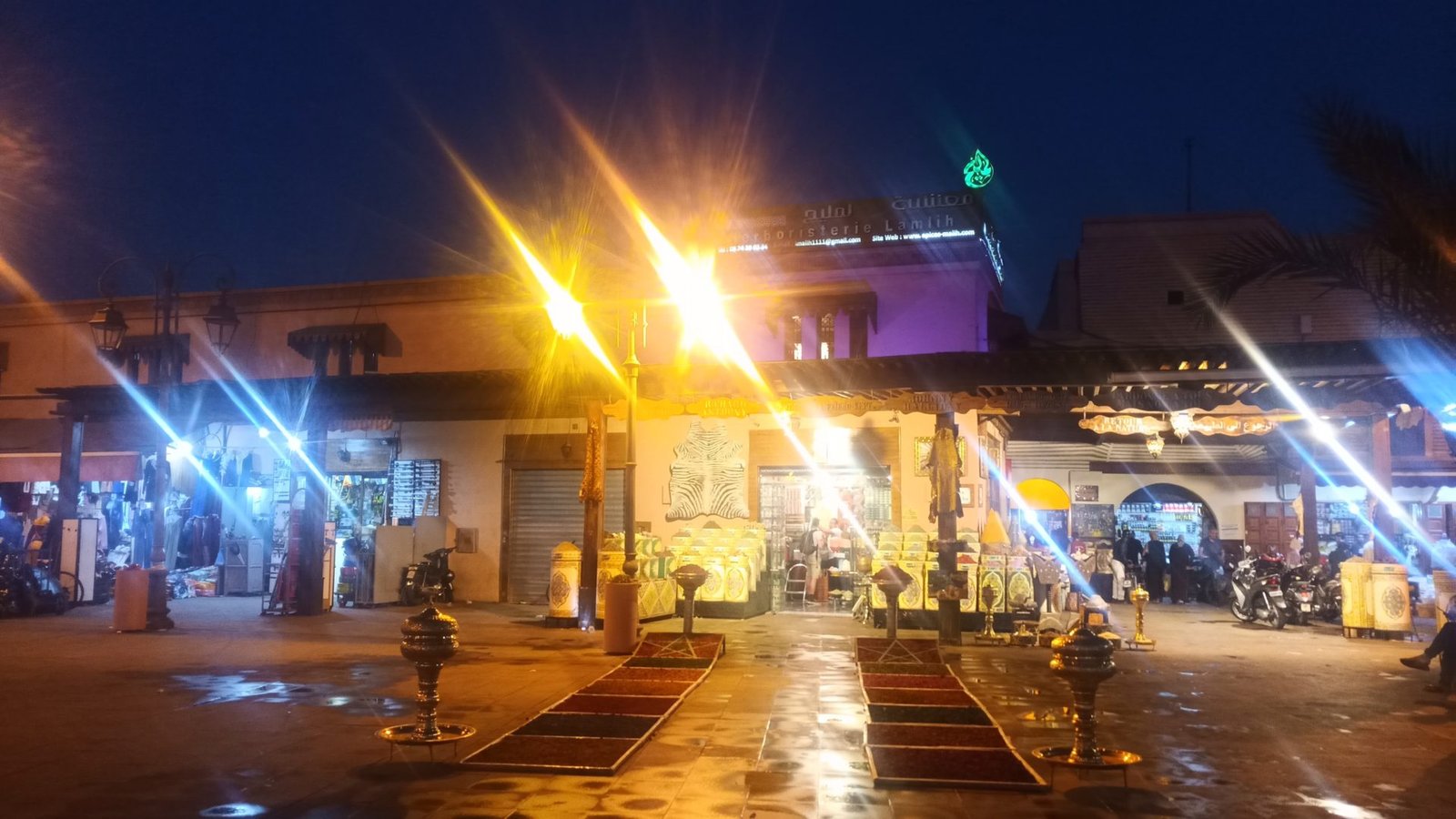 Sin embargo, el momento culminante de Jamaa el Fna es el anochecer, cuando se convierte en un enorme escenario al aire libre donde malabaristas, músicos, faquires, encantadores de serpientes y juglares hacen gala de sus destrezas.