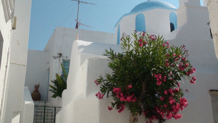 En Samos hay muchas posibilidades, muchas cosas por hacer y para ver: el sitio mismo donde nació Pitágoras, la columna del templo de Hera en el Ireon que supo ser más grande que el mismísimo Partenón. Es una isla amplia con vestigios de un pasado intenso. El mismo panorama vamos a ir encontrando en las demás islas a las que vayamos; por ejemplo, Syros, si acampamos en Galissas, luego tenemos que visitar la ciudad principal, Ermoupolis, llamada así en honor a Hermes y también ir a caminar por empinado pueblo de Ano Syros, desde el Vrodado. En Naxos, además de la ciudad principal, podemos hacer trekking ya que posee una red de senderos. Naxos es la isla donde Teseo dejó a Ariadna después de que Ariadna le diera el hilo largo largo para guiarlo en la salida del laberinto. En Naxos, Ariadna hizo buenas migas con Dionisos. Dicen que no hay mejor vino que el vino de Naxos para un corazón destrozado. En Paros, la ciudad principal es Parikia, el camping está en la playa Kolymbithres pero hay un pueblito llamado Naoussa y otro llamado Levkes, bellísimos los dos, y a los que se puede llegar en el bus local. También iremos a Anthiparos, la antítesis de Paros, pequeña y tranquila, sin movimiento de turistas, separada de Paros por un estrecho de mar. El colectivo nos lleva hasta un lugar que se llama Punta y de ahí, un barquito. Y otro día, otro ferry, hasta la legendaria Santorini, la isla del jet-set al alcance de nuestro bolsillo. Hay un camping de lujo que cuesta 9 euros y buses para recorrer toda la isla. Es alucinante la llegada en barco a Santorini, desembarcamos en una garganta gigante y negra de escoria volcánica. Santorini es lo que queda de una isla que fue mucho más grande varios milenios antes de Cristo, destruida por una catastrófica erupción durante la cual, al parecer según coincidencias con los textos de Platón, desapareció la Atlántida.
