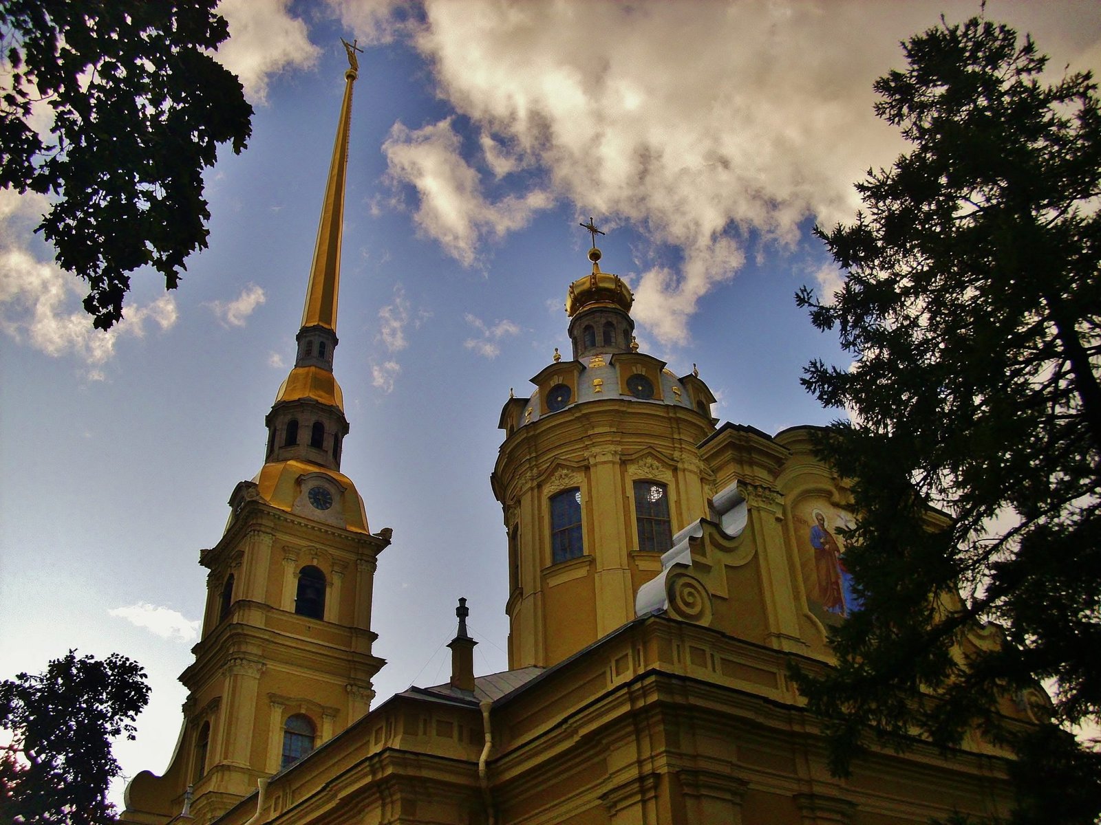 Esta iglesia es alucinante por dentro, toda recubierta en mosaicos de colores altisonantes. Son más de 7000 metros cuadrados de mosaiquitos. Está construida en estilo ecléctico, sobre el lugar donde el zar Alejandro II fue asesinado. Durante la Segunda Guerra Mundial y el bloqueo de la ciudad, una bomba cayó encima de la cúpula más alta de la iglesia. La bomba no explotó y estuvo dentro de la cúpula de la iglesia durante 19 años. Cuando los obreros subieron a la cúpula para remendar las goteras, la bomba fue encontrada y retirada. Entonces se decidió comenzar la restauración de la Iglesia de la sangre derramada. Tras 27 años de restauración, la Iglesia del Salvador sobre la Sangre Derramada fue inaugurada como museo estatal.