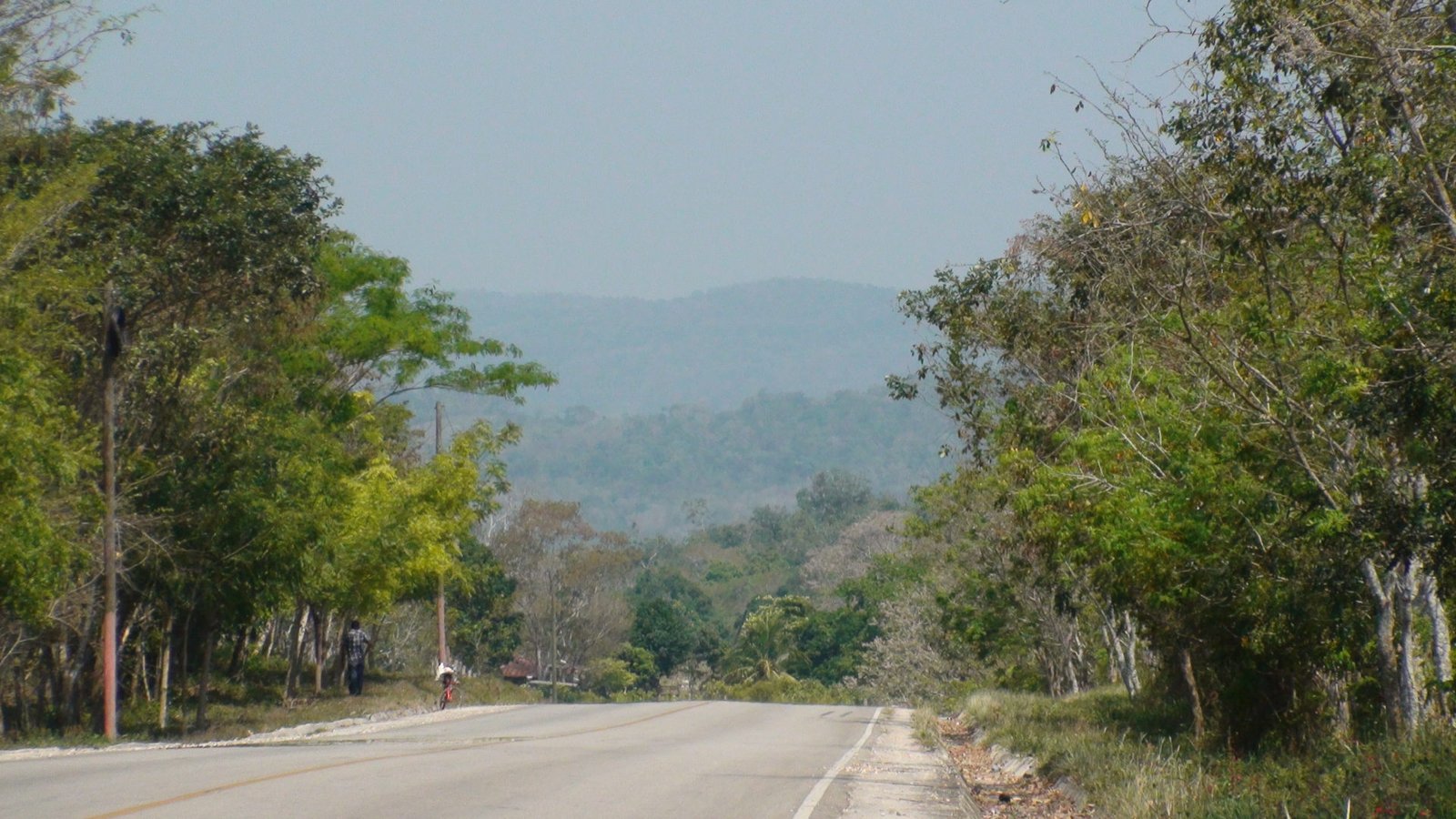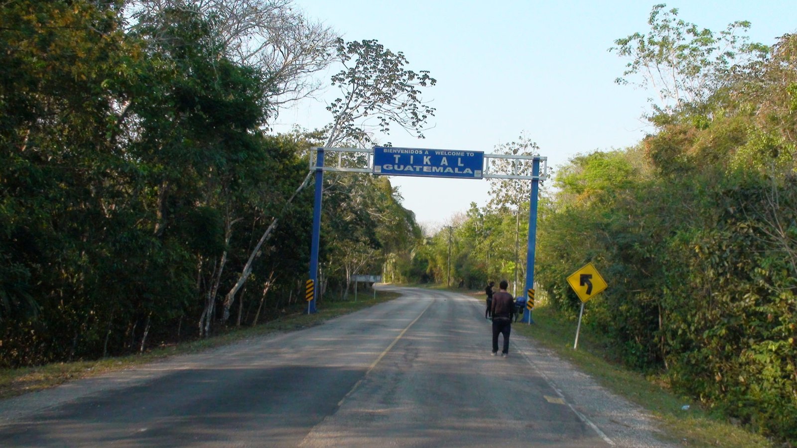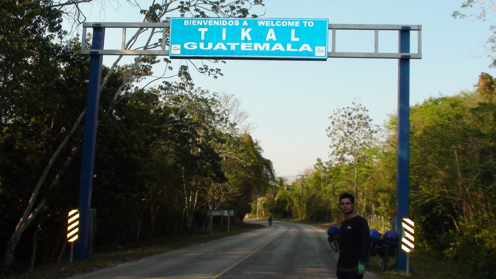 La ruta entre La Máquina y El Remate es de tráfico y desniveles calmos. Nada que se zafe de lo normal o que merezca destacarse. Lo bravo vendrá después. Antes de llegar al Remate y a las orillas del Lago Petén Itzá, hicimos una parada estratégica y placentera en una palapa sobre la laguna Macanché a 27 kilómetros de La Máquina y casi 10 del Remate. Sobre la laguna Macanché está este parador bonito, con una vista espectacular de la laguna, bebidas frescas y hamaca paraguaya para echarse una siestita. Luego seguimos hacia El Remate donde aprovisionamos algunos víveres para la estadía en Tikal y nos sentamos a comer en un restaurante sobre el lago Petén Itzá. Con una vista agradable, buena atención y buen precio, dejamos pasarse el mediodía sin apuro. Habíamos pedaleado esos 36 kilómetros en menos de dos horas y especulábamos que nos faltaría apenas un poco más de la mitad hasta Tikal a 39 kilómetros de allí.