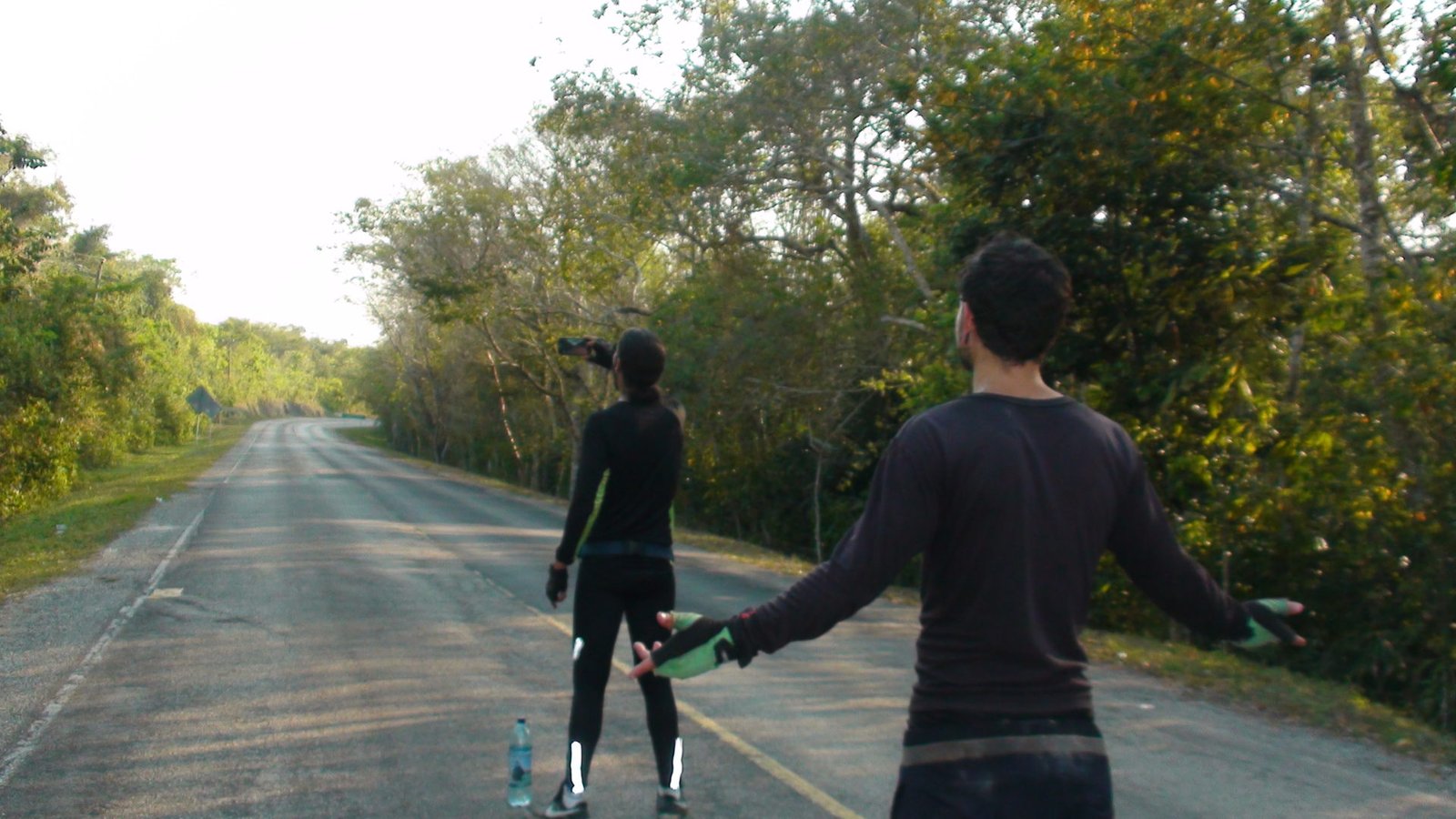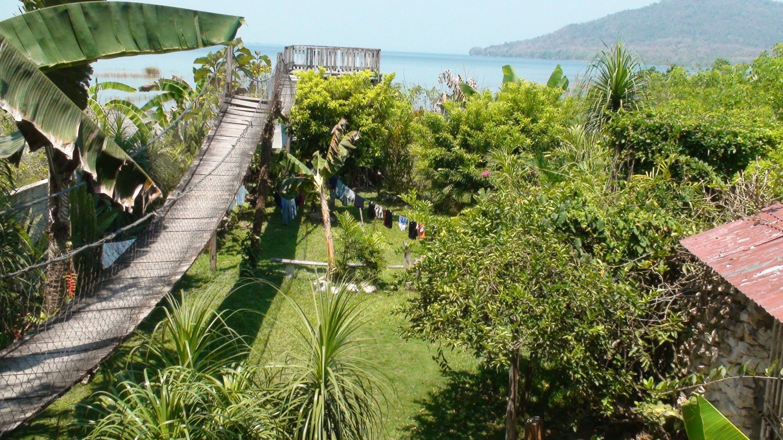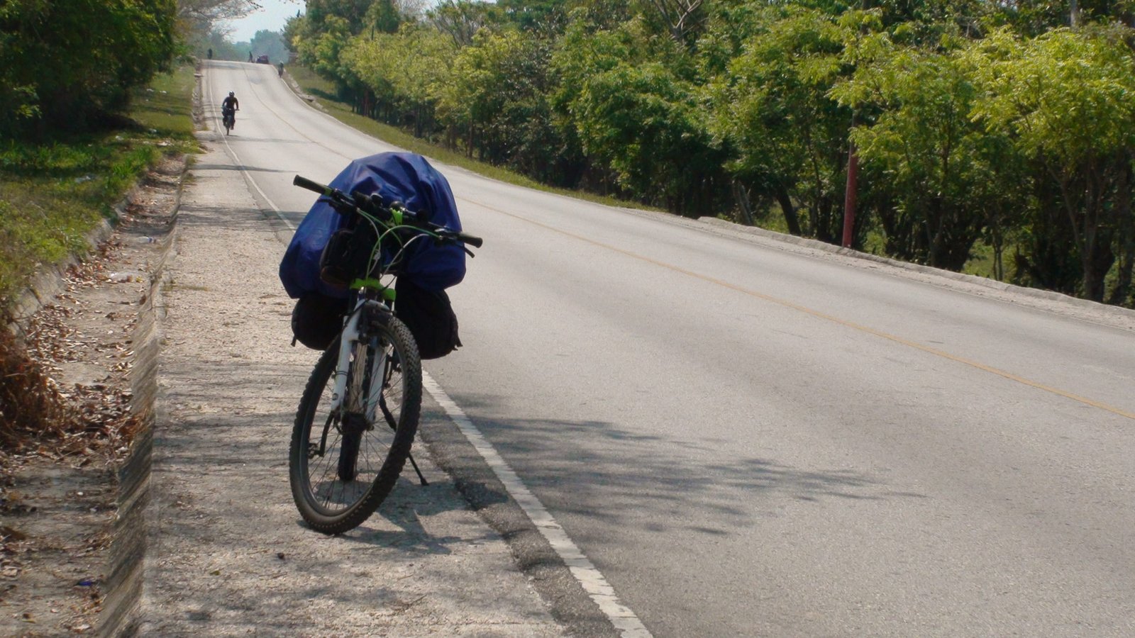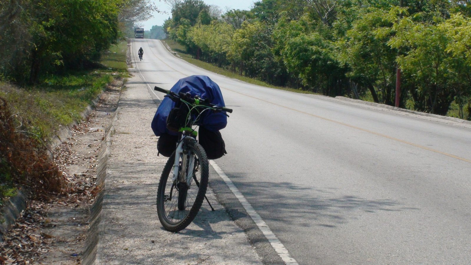 La ruta entre La Máquina y El Remate es de tráfico y desniveles calmos. Nada que se zafe de lo normal o que merezca destacarse. Lo bravo vendrá después. Antes de llegar al Remate y a las orillas del Lago Petén Itzá, hicimos una parada estratégica y placentera en una palapa sobre la laguna Macanché a 27 kilómetros de La Máquina y casi 10 del Remate. Sobre la laguna Macanché está este parador bonito, con una vista espectacular de la laguna, bebidas frescas y hamaca paraguaya para echarse una siestita. Luego seguimos hacia El Remate donde aprovisionamos algunos víveres para la estadía en Tikal y nos sentamos a comer en un restaurante sobre el lago Petén Itzá. Con una vista agradable, buena atención y buen precio, dejamos pasarse el mediodía sin apuro. Habíamos pedaleado esos 36 kilómetros en menos de dos horas y especulábamos que nos faltaría apenas un poco más de la mitad hasta Tikal a 39 kilómetros de allí.